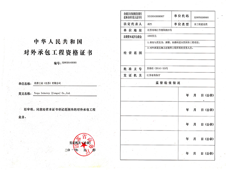 环境管理体系 对外承包工程资格证