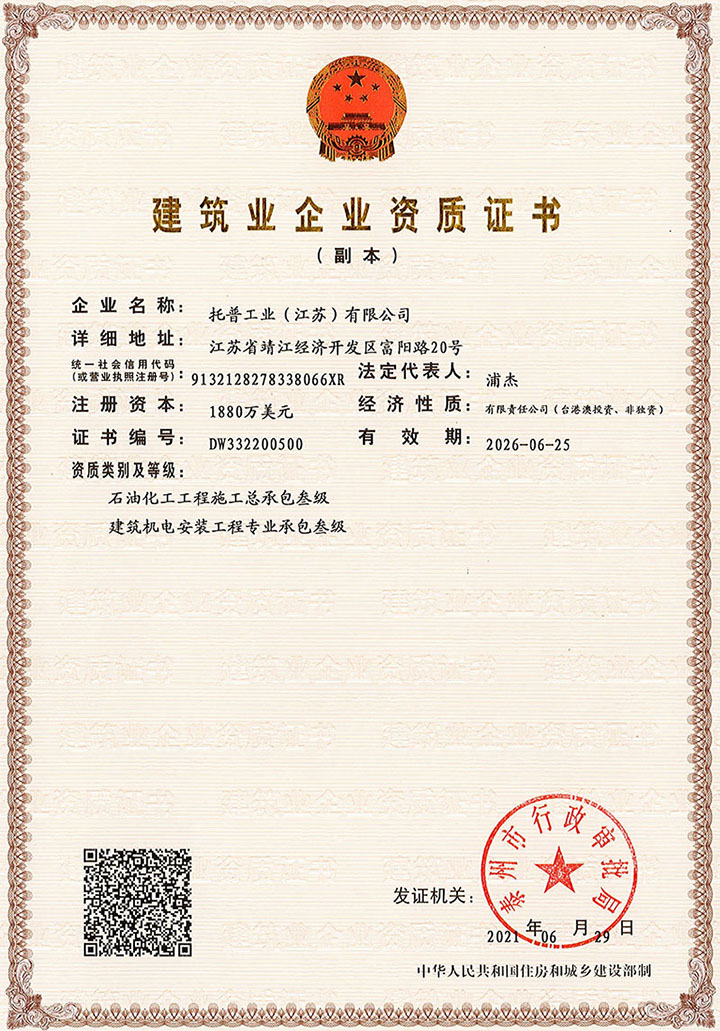 建筑业企业资质证书 压力管道元件